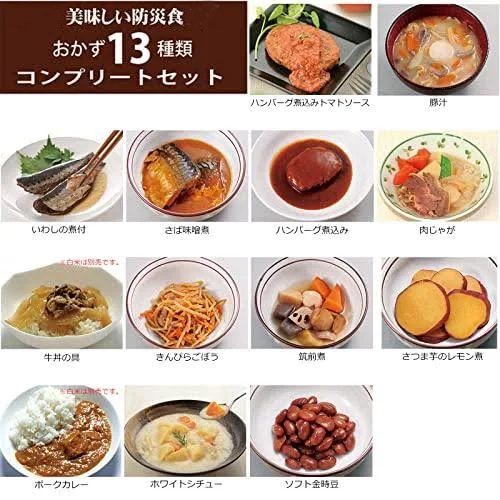 長期保存非常食「美味しい防災食」おかず13種類をセットにしました。